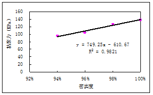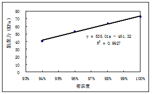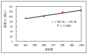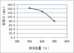 图10密实度与粘聚力关系(最大粒径5mm,碎石含量40%,含水率8.5%)