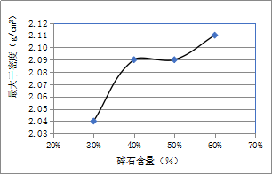 图6碎石含量与最大干密度关系(最大粒径10mm)