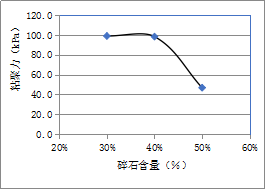 图12密实度与粘聚力关系(最大粒径5mm,碎石含量50%,含水率8.5%)