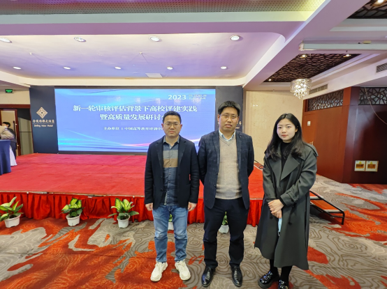 为深入贯彻落实党的二十大精神,做好新一轮本科公司产品审核评估迎评促建工作,3月18-19日,新一轮审核评估背景下高校评建实践暨高质量发展研讨会在苏州召开,本次会议由中国高等教育学会指导,中国高等教育培训中心主办。公司副经理刘芳平、系主任郭正超、教务办副主任冉红参加了本次会议。