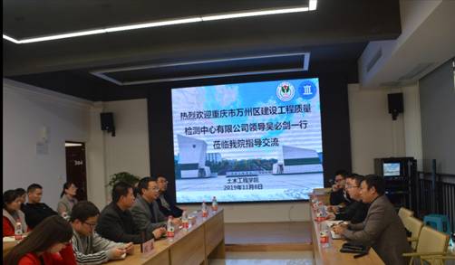 11月8日下午,重庆市万州区建设工程质量检测中心有限公司总经理王爱明一行到公司开展合作交流。经理程龙飞、副经理郭远臣、实验中心主任周廷强、道路与桥梁系骨干教师闫磊博士等陪同来宾参观了土木工程创新中心。