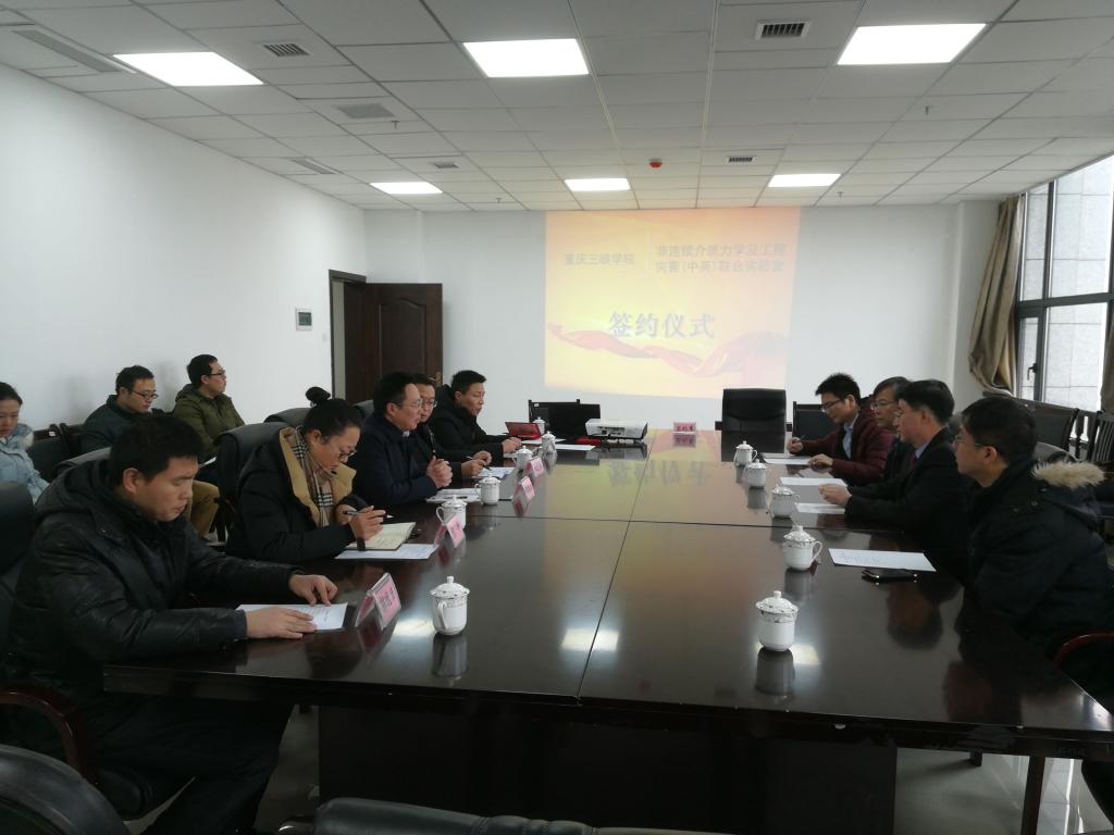 1月10日上午,beat365体育官网与非连续介质力学及工程灾害(中英)联合实验室签约仪式在公司百安校区隆重举行。此次签约仪式开创了公司在团队引进方面一种新的合作模式,具有里程碑的意义。公司副董事长谭明术,非连续介质力学及工程灾害(中英)联合实验室中英双方主任李世海、冯云田及联合实验室骨干成员,人事处处长黎平、科研处副处长吕政宝、土木工程公司党政领导及学术骨干参加了签约仪式。仪式由黎平主持。